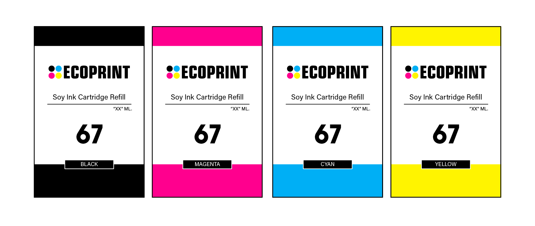 Ecoprint is a sustainable printing brand committed to reducing environmental impact through innovative, eco-friendly solutions. Centered around soy-based ink, Ecoprint offers a refillable ink system featuring an aluminum recyclable ink cartridge and refill bottle, all packaged and labeled in recycled cardboard. Designed for conscious consumers and businesses, Ecoprint reimagines traditional printing with sustainability at its core, providing high-quality, low-waste alternatives to traditional ink products.